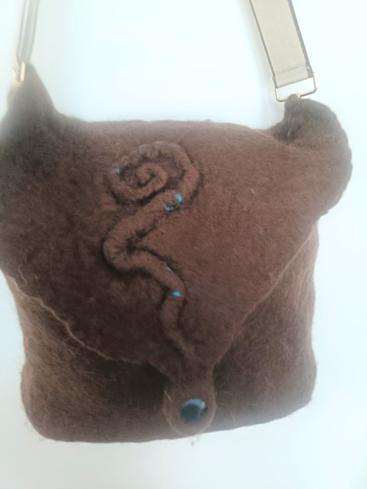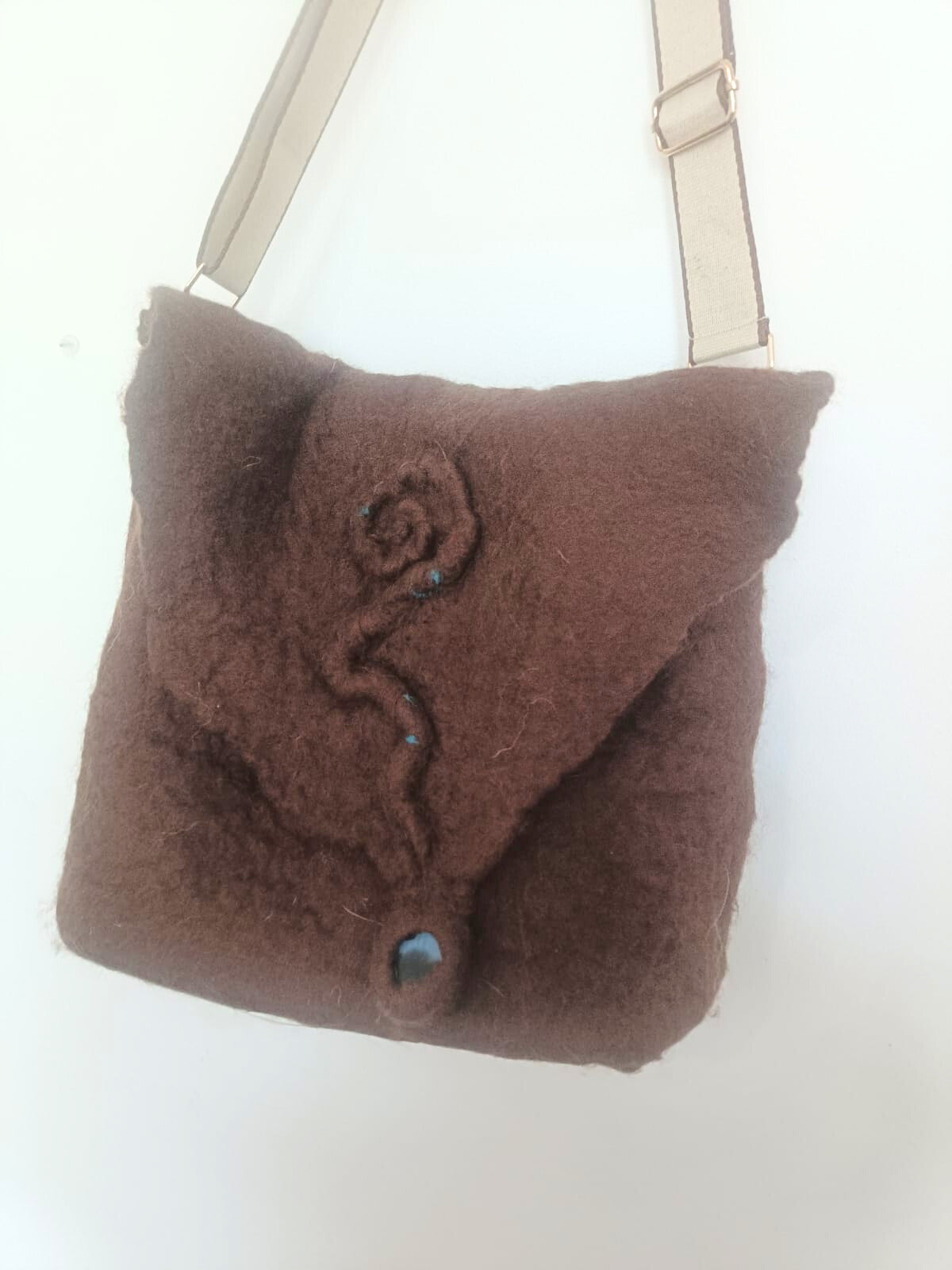 Bolso artesanal confeccionado en lana merino de primera calidad, diseñado para acompañarte en tu día a día. Su amplio interior ofrece espacio generoso para tus pertenencias, mientras que los detalles en tonos azules y piedra azulada le otorgan un carácter distintivo y elegante. Versátil en su uso, cuenta con correa regulable que permite llevarlo cruzado al hombro o en la mano según tus necesidades. Cada pieza es elaborada artesanalmente, garantizando durabilidad y un acabado impecable que refleja la dedicación al detalle.